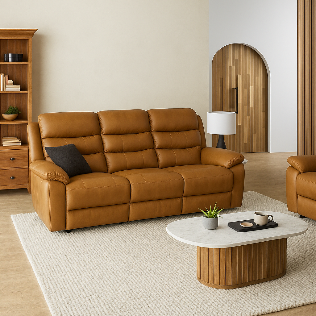 Mopane Sage Full 100% Genuine Leather 6 Seater Recliner Sofa Set