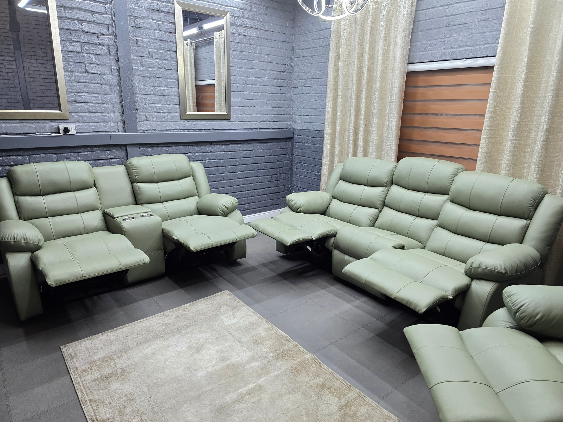 Mopane Sage Full 100% Genuine Leather 6 Seater Recliner Sofa Set